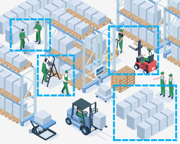 カメラ映像をもとに、トラッキング、パトライト認識、手書き伝票のOCR解析などを組み合わせて、現場の作業状況・実績を正確に記録・管理。記録する、集計する時間を削減し、ヒューマンエラーの少ないリアルな作業データを取得できます。